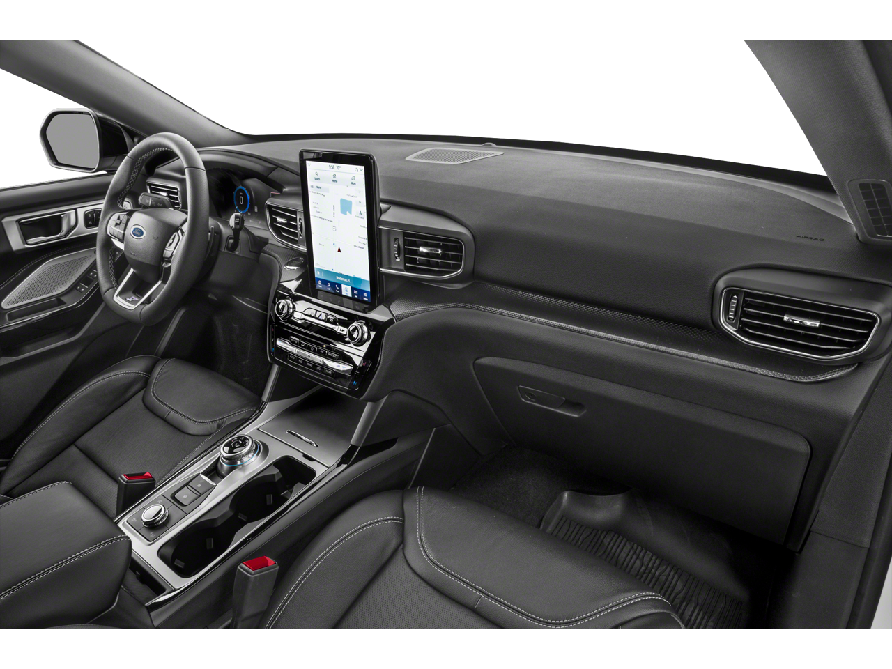 Indulge in unparalleled comfort and style with the Explorer ST's premium interior. Heated and ventilated front seats, a heated steering wheel, and second-row heated seats ensure everyone on board enjoys a luxurious journey. The twin-panel moonroof and ambient lighting create a serene and sophisticated ambiance, while the sleek, sporty exterior turns heads wherever you go.